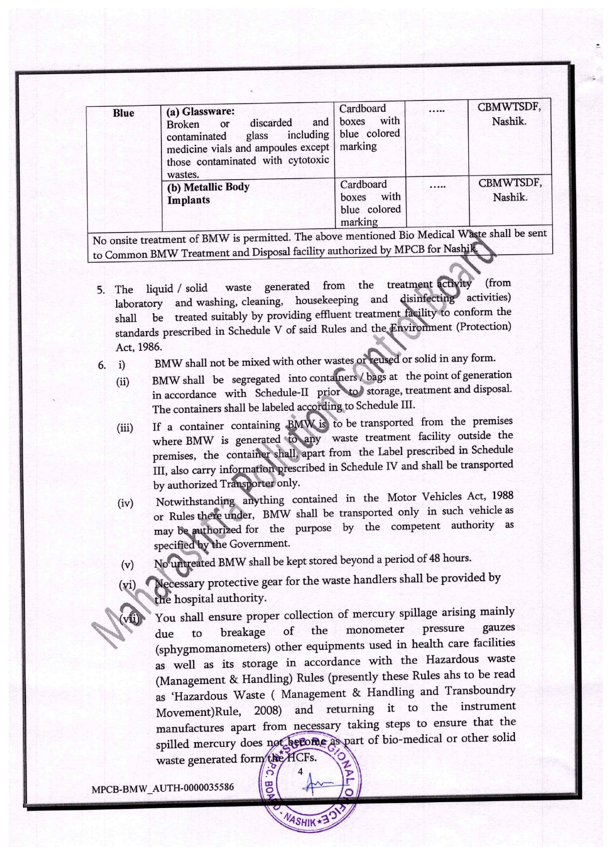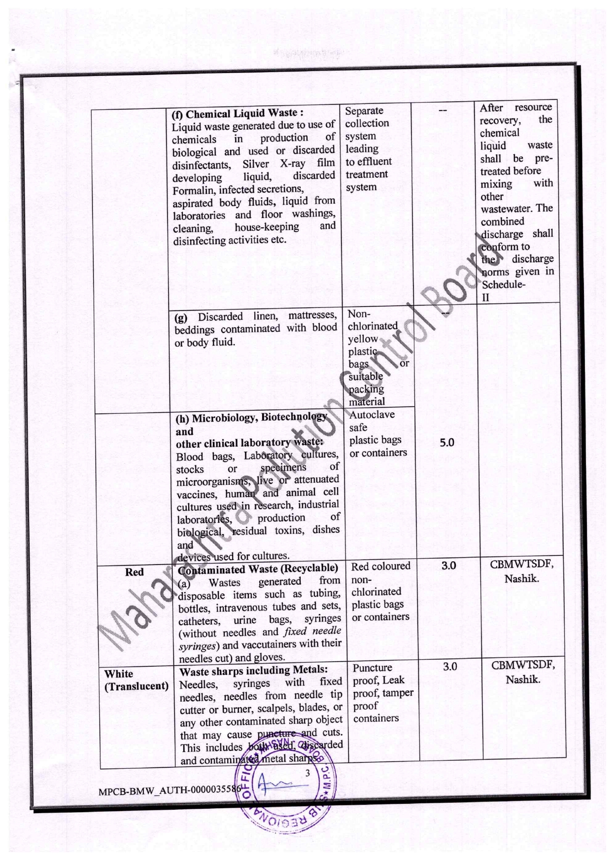 The authorization for collection/reception/treatment /transport/storage/disposal of Biomedical waste as defined under the Rules obtained by Board as the Board has been declared as the prescribed Authority under the Rules.