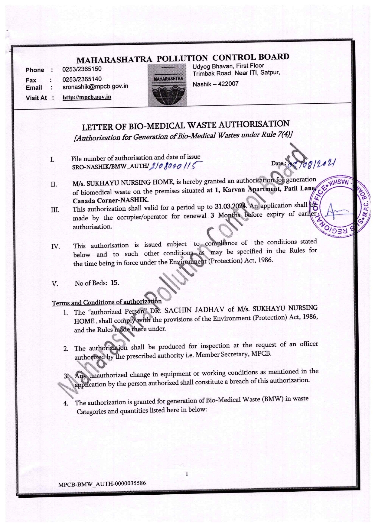 AUTHORISATION TO SUKHAYU HOSPITAL