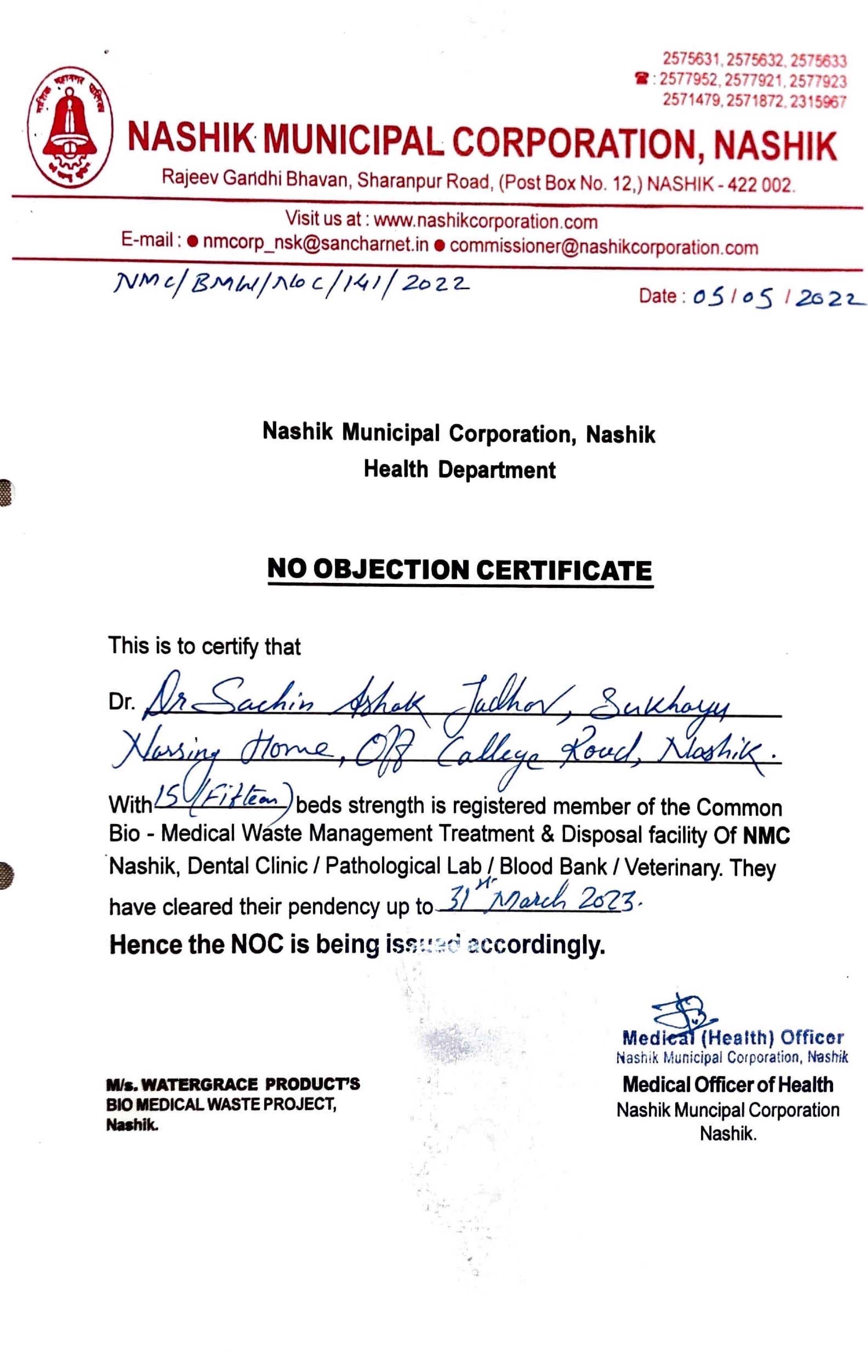 Registration with Nasik Municipal Corporation, Maharashtra